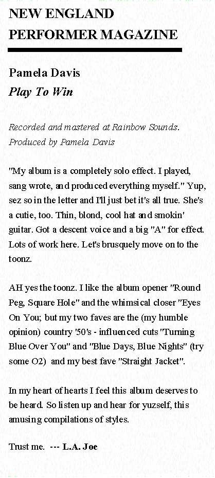 Pamela Davis A site devoted to my recorded works